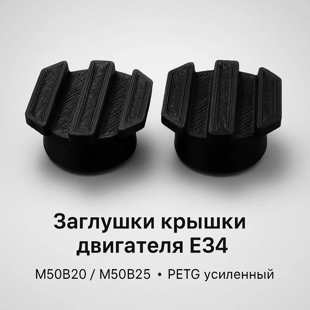 Заглушки крышки двигателя BMW E34 M50 • комплект 2 штЗаглушки крышки двигателя BMW E34 Подходят для моторов: • M50B25 • M50B20 Выполнены из прочного PETG-пластика — идеально держат форму, не боятся температуры и вибраций.