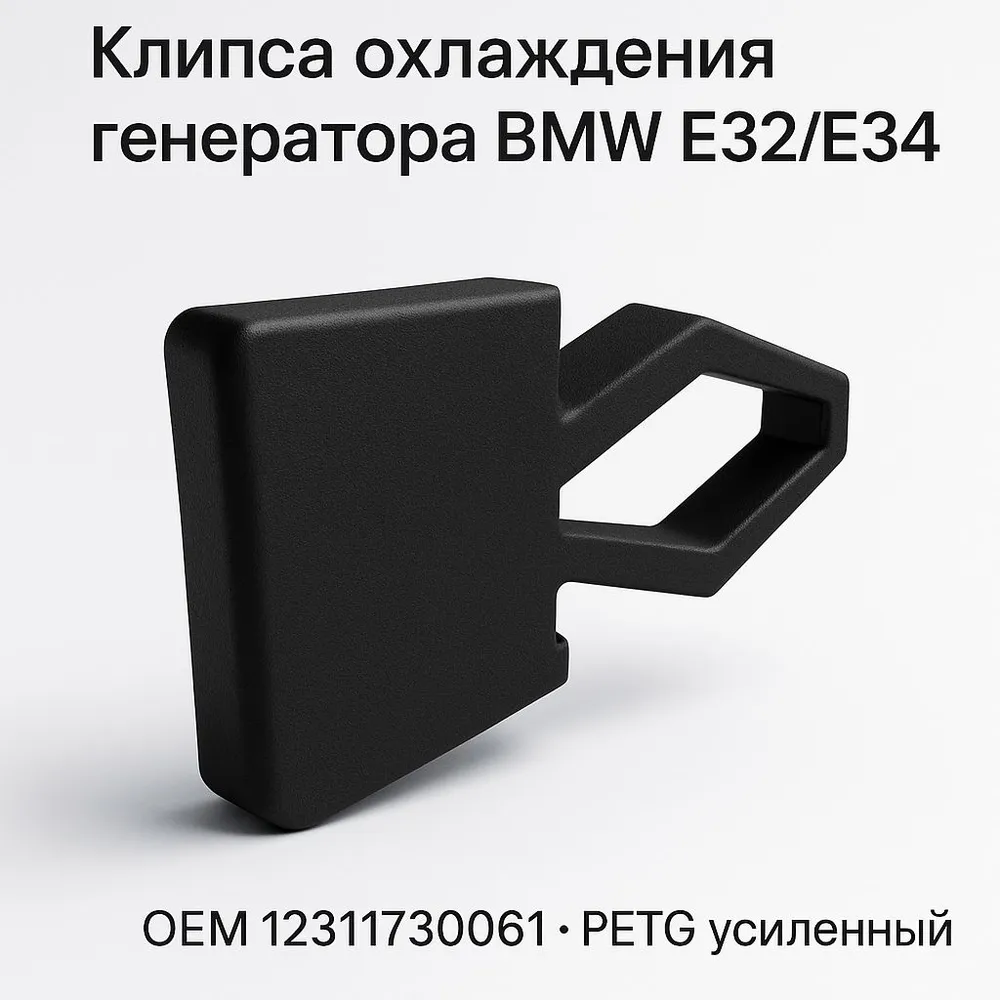 Клипса охлаждения генератора BMW E32 E34 PETG усиленнаяКлипса охлаждения генератора для BMW E32 и E34 — усиленная замена штатного крепежа, выполненная из прочного PETG-пластика.